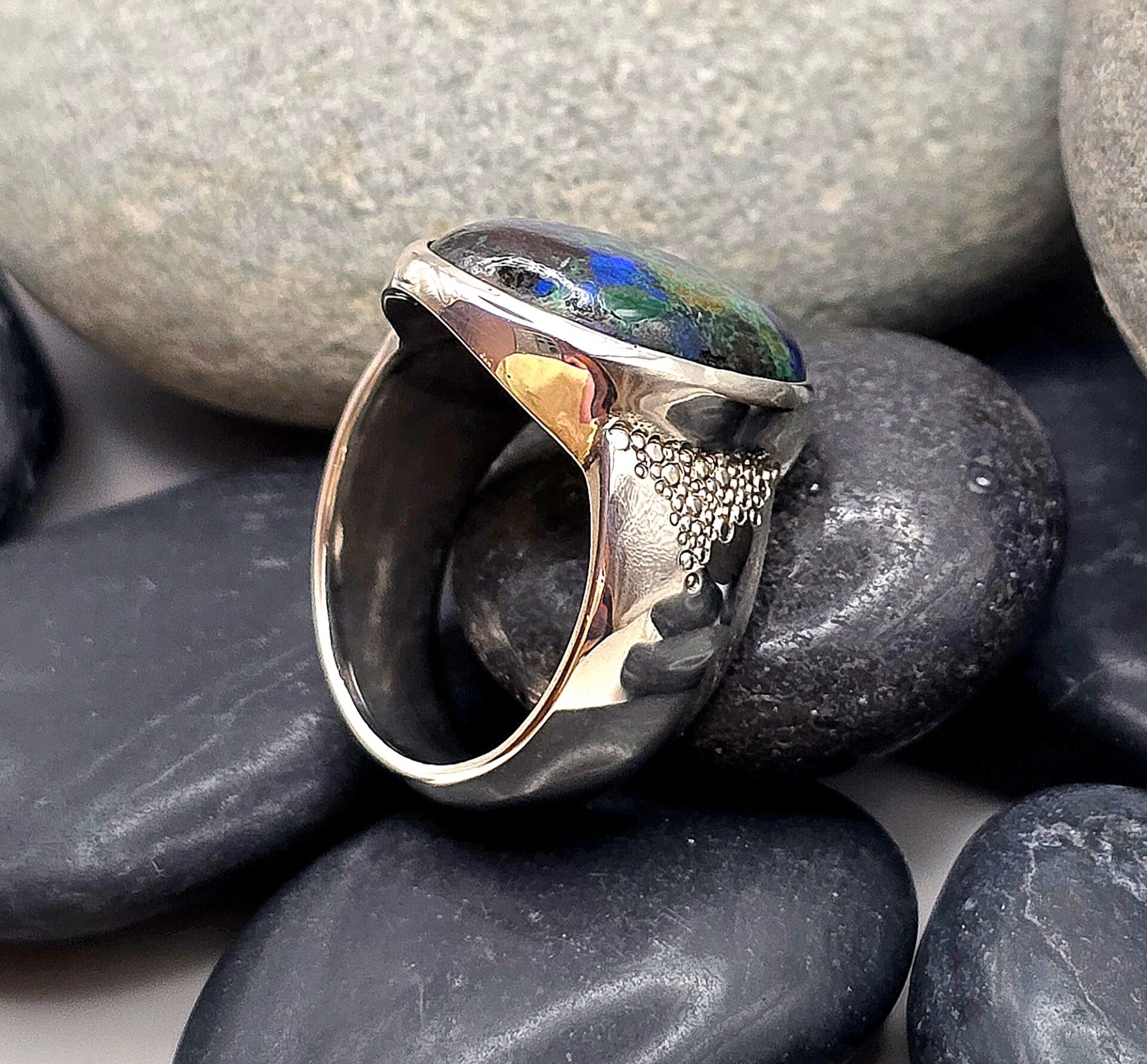 Sterling Silver “Earth” Ring – Chunky Azurite Malachite Statement Piece
