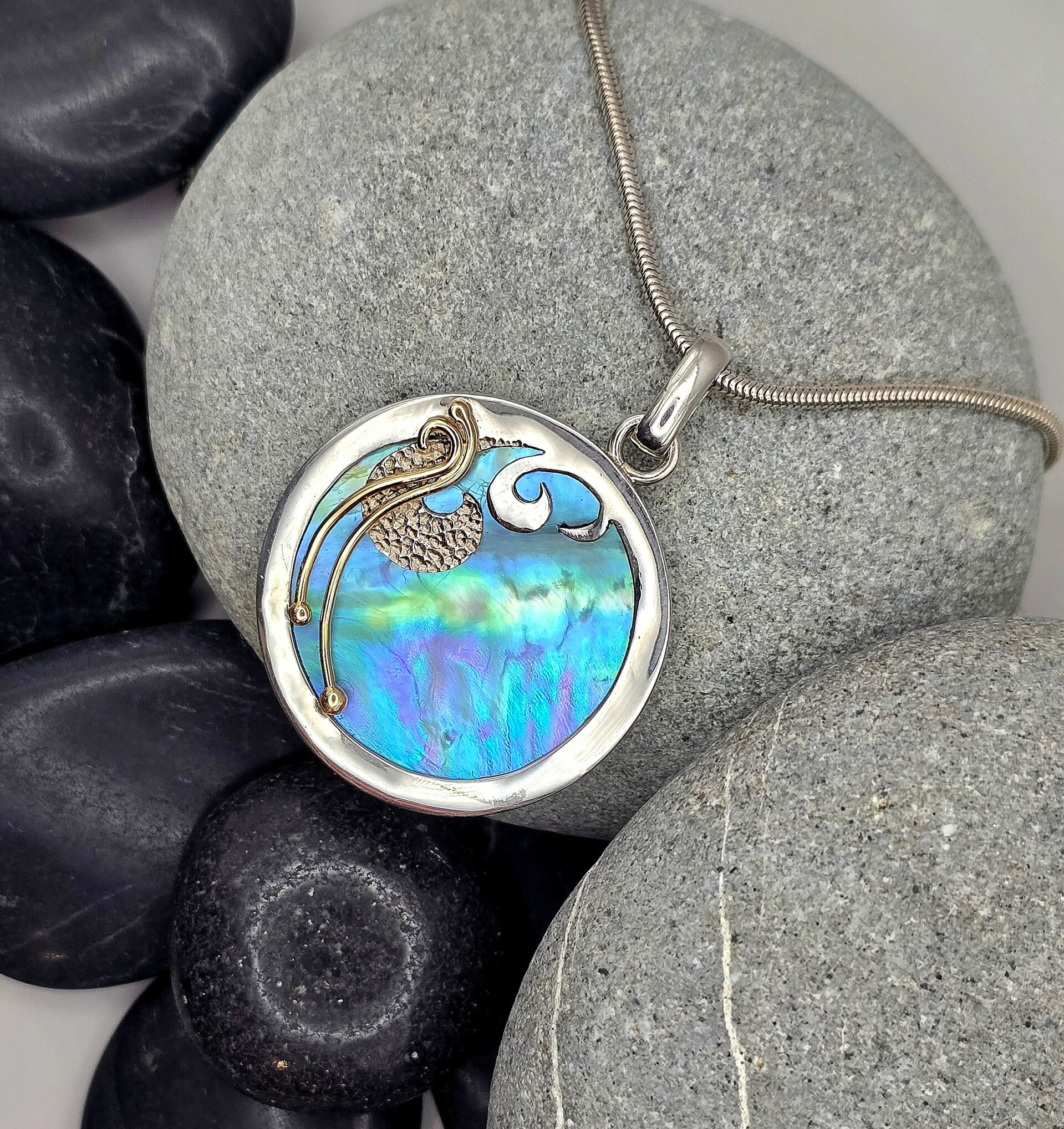 Sterling Silver & 18ct Gold Paua Pendant – Inspired by New Zealand’s Natural Beauty