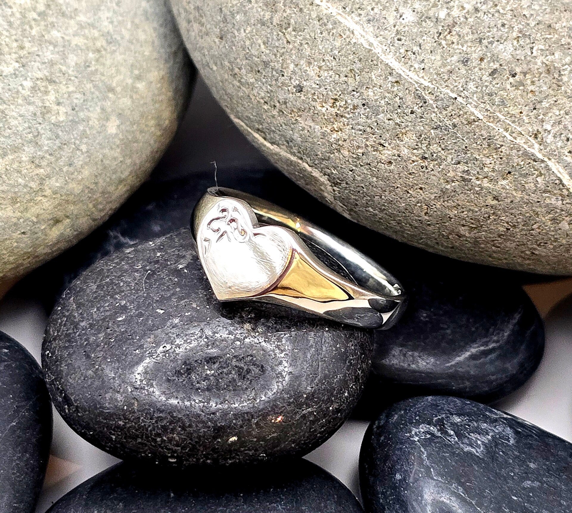 Simple, meaningful, and beautifully made — this hand finished cast silver heart signet ring is a piece that celebrates love, individuality, and enduring style.
